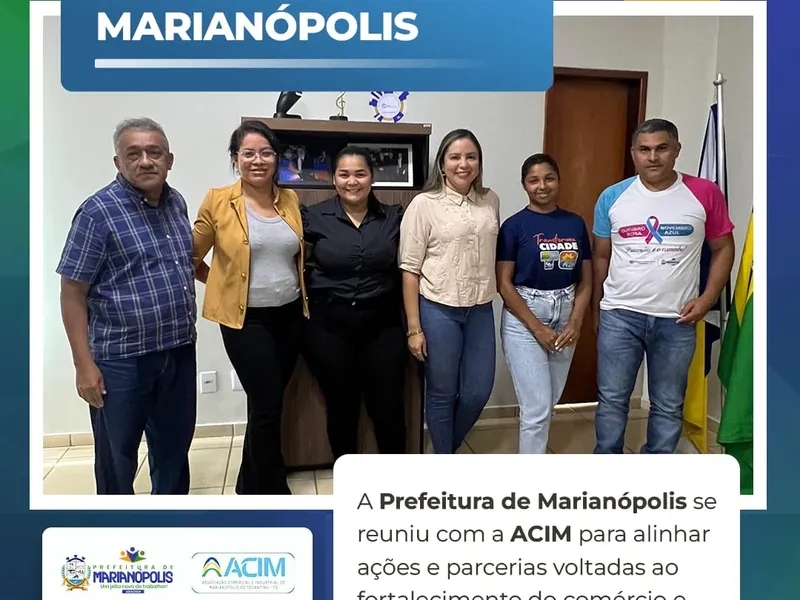 A Prefeitura de Marianópolis promoveu um encontro fundamental para o progresso econômico da cidade ao reunir-se com a Associação Comercial e Industrial de Marianópolis (ACIM). A reunião contou com uma força-tarefa composta pelas secretarias de Indústria e Comércio, Saúde, Meio Ambiente e Turismo, além da Agente de Desenvolvimento do Sebrae.
